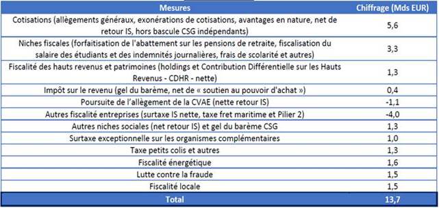 - Le rendement de la prolongation de moitié de la surtaxe sur les bénéfices des grandes entreprises pour EUR 4 Mds est plus aléatoire que celui de la surtaxe de 2025 ;