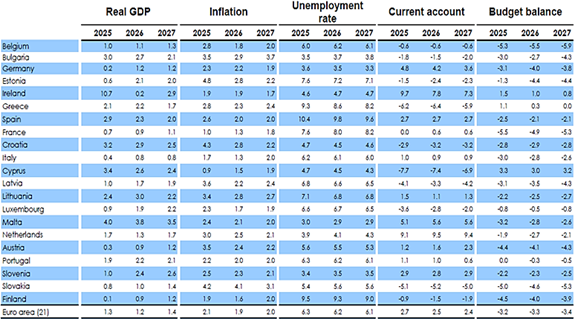 Synthèse des prévisions économiques pour la Zone Euro